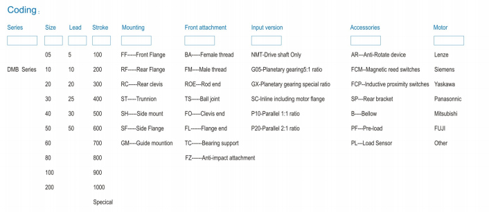Finally, the motor type, communication mode, driver type, voltage, cable length, etc., are determined. Accessory structures include magnetic proximity switches (FCM), proximity limit switches (FCP), dust covers (B), pressure sensors, displacement sensors, anti-rotation mechanisms, and various other structures. With all these steps completed, the selection of a complete servo cylinder is finished.