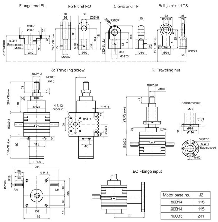 US: Upright translating screw UK: Upright keyed screw UR: Upright rotating screw