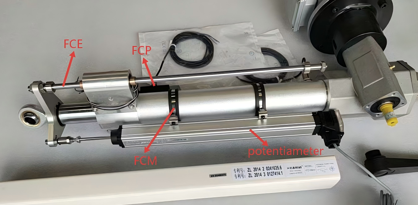 A potentiometer, or displacement sensor, converts mechanical movement into an electrical signal, providing continuous feedback on the actuator's position. These devices are widely used to ensure precision in motion control.